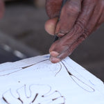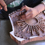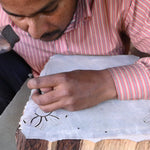 Whether it's from the creative minds of local artisans in India, or our own, it all starts with a sketch. The prints are drawn out, transferred onto the computer for final tweaks, then printed out to be traced onto a wooden block.