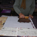 The most exciting part - seeing the design come to life. Once all the blocks are made, the dyes are mixed, and the printing starts, all by hand, with only rulers or the naked eye used for precision.