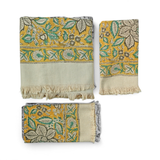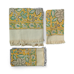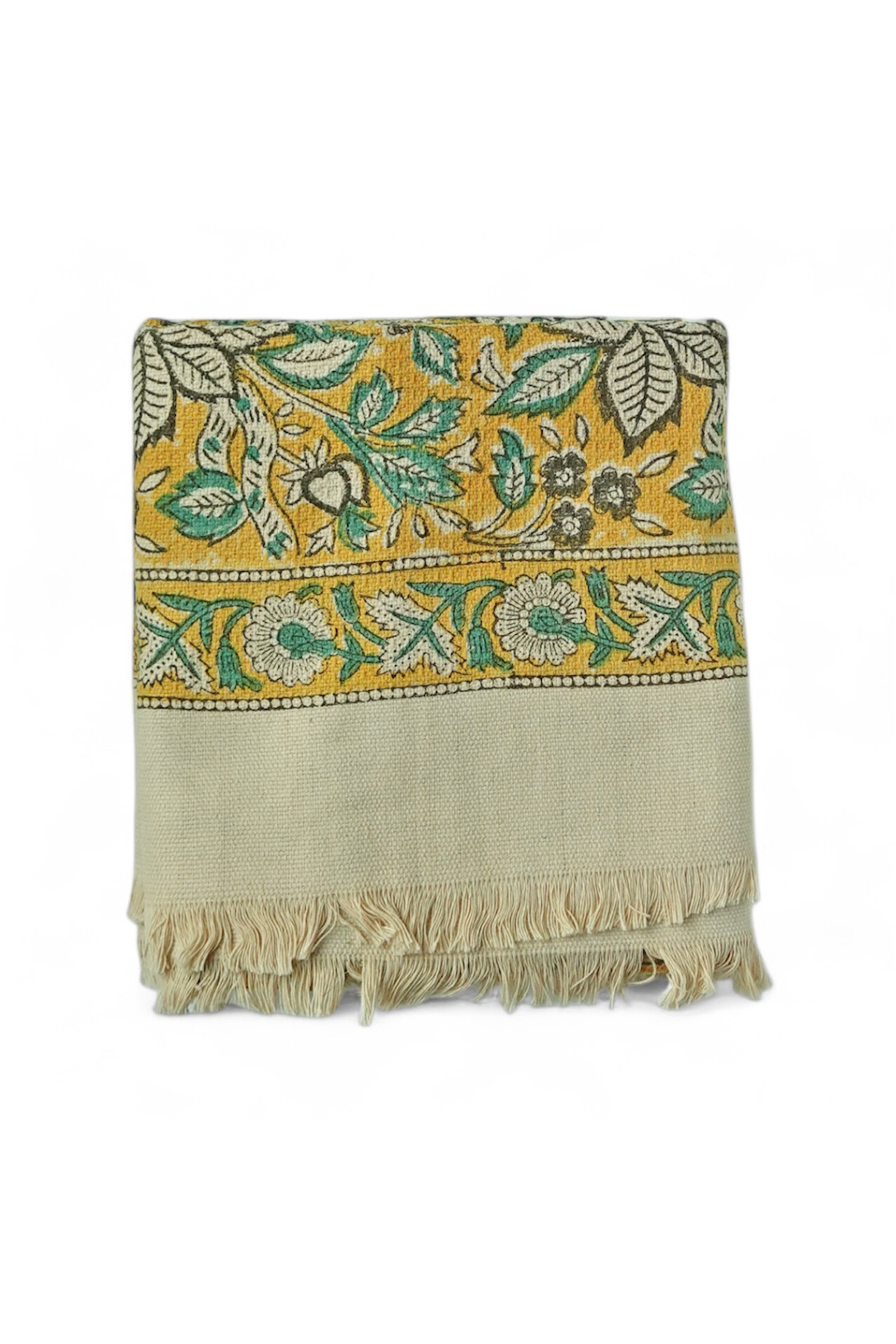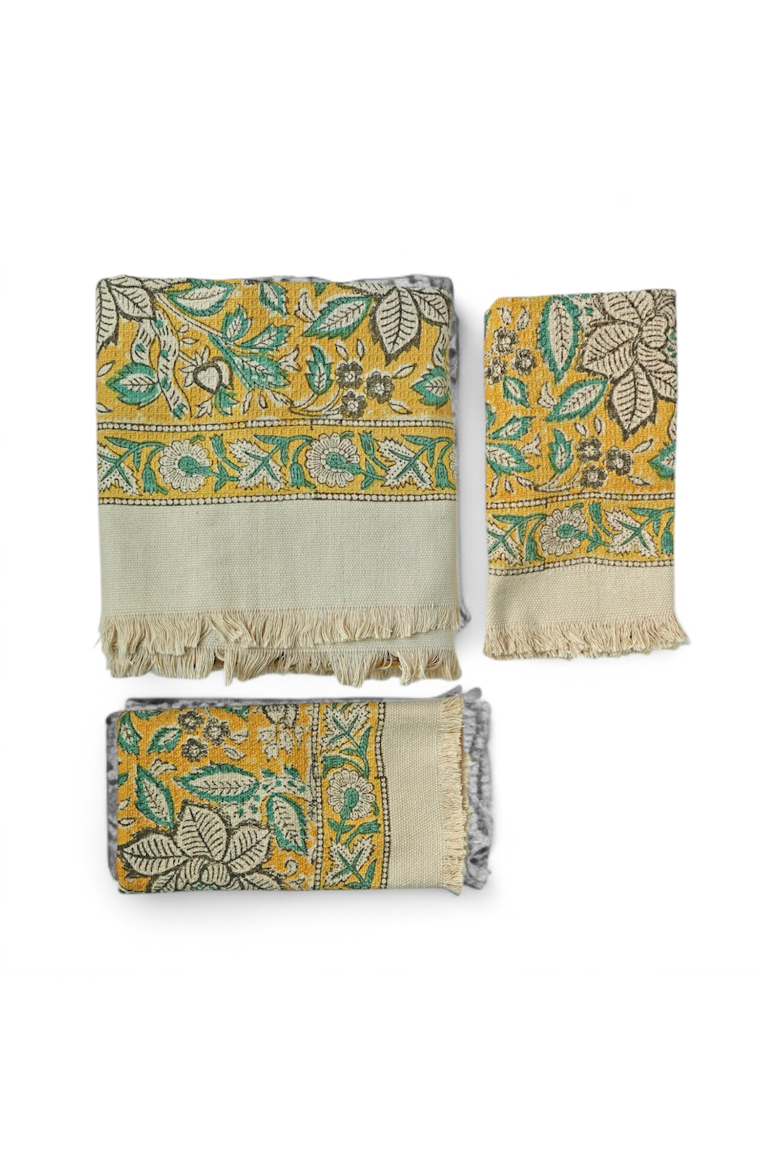 Towels are printed on one side. Due to the nature of hand block printing, dye may be seen on the reverse side, print and color may vary from piece-to-piece, and placement of print may not always be exact as everything is handmade and human error does occur. This enhances the artistic nature of hand block printing.