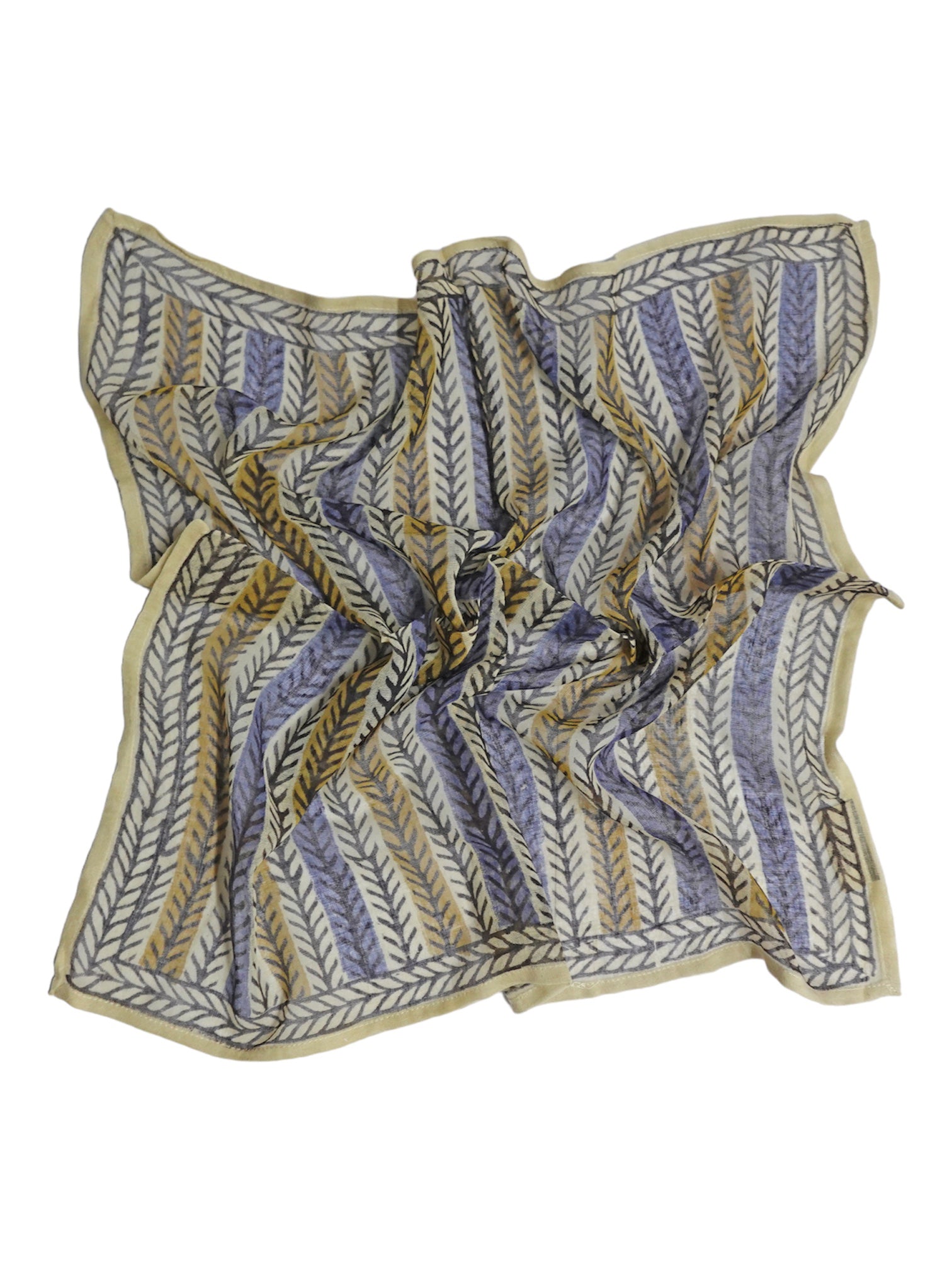 Block printed Frontier bandana tied and laid flat against a white background