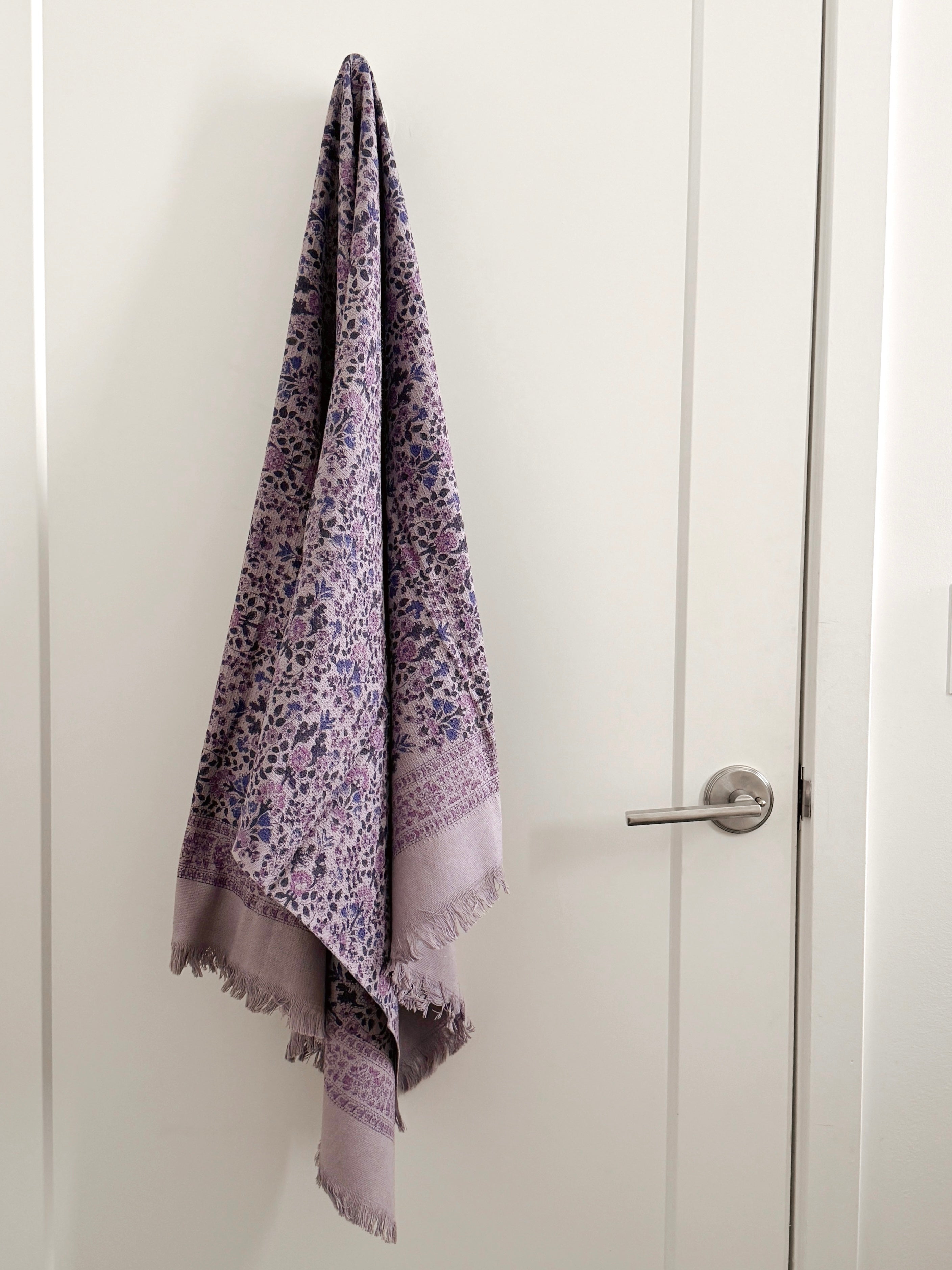 Lightweight. Exfoliating. Block printed with a delicate, charming lavender floral print. Throw away those basics and instead opt for the Hera bath towel, which will surely romanticize your bathroom.